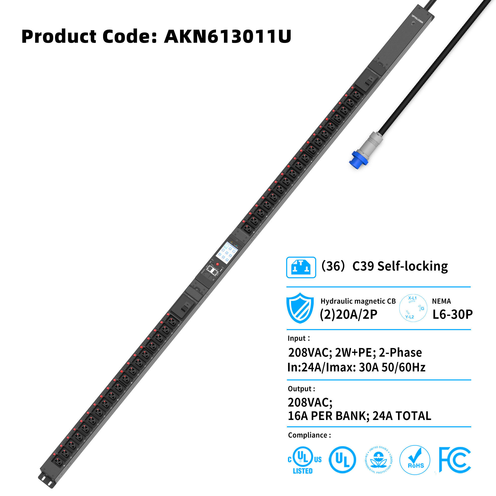 Support for C13, C19, C39, NEMA, UK, SCHUKO, IEC self-locking socket.